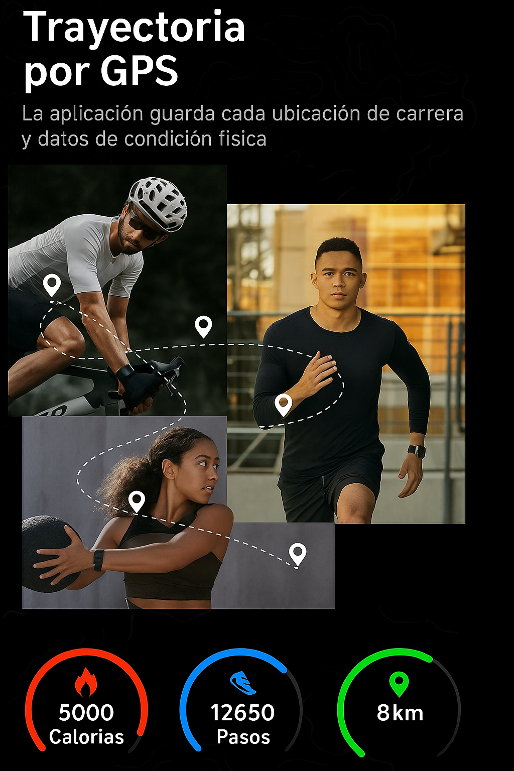 El GPS registra tu recorrido en tiempo real durante actividades como correr, caminar, andar en bicicleta o escalar. Además, guarda el mapa y las métricas de distancia, velocidad y ritmo en la aplicación.