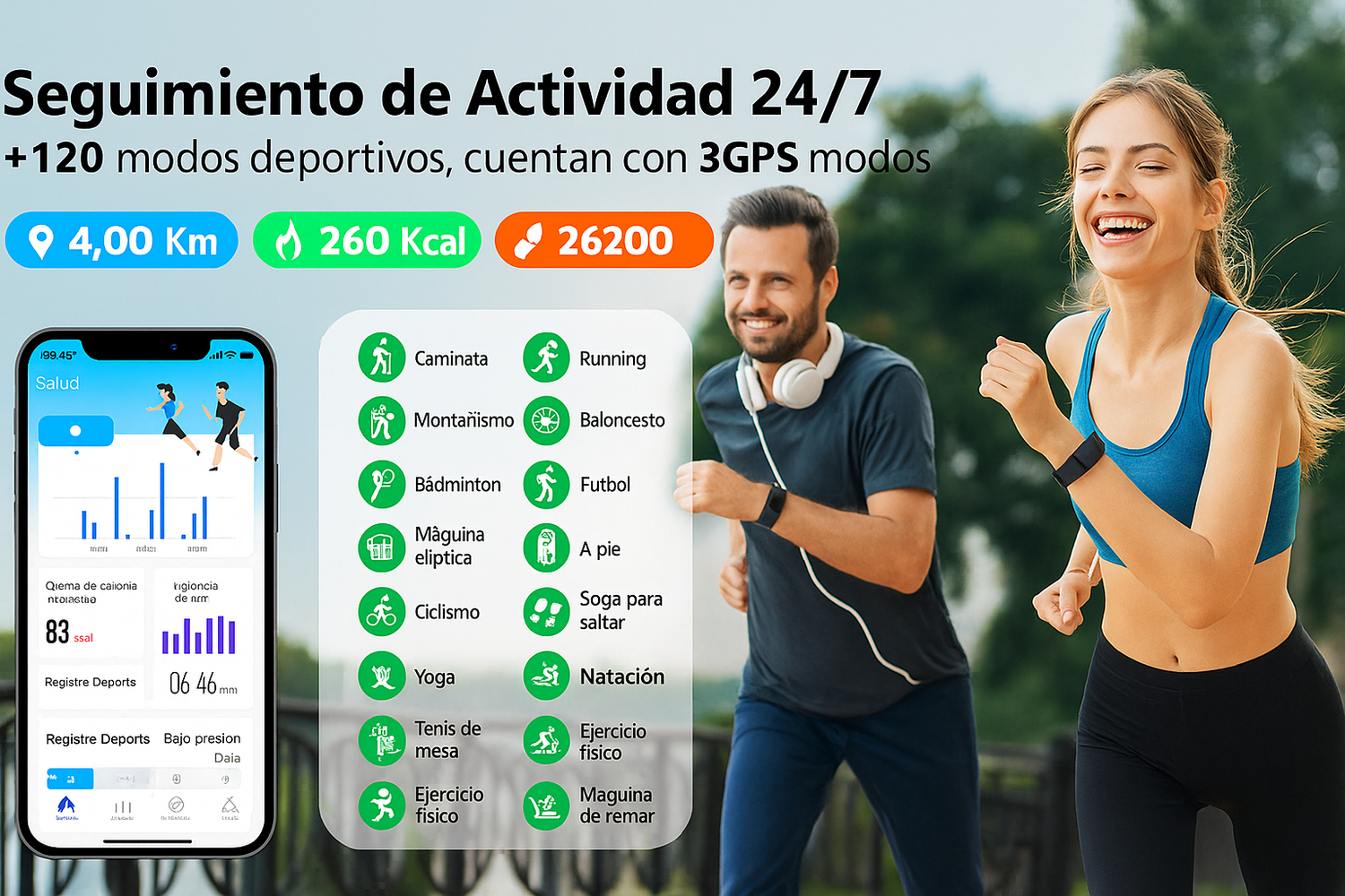 Esta pulsera inteligente te muestra lo que tu cuerpo no dice: mide tus pasos, calorías, ritmo cardíaco y más de 120 modos deportivos con precisión, además de analizar tu descanso para maximizar tu recuperación.